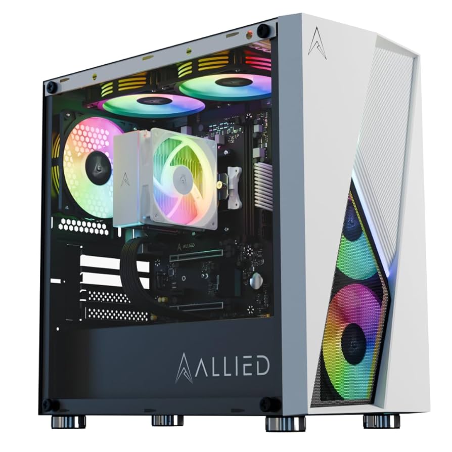 This PC focuses on efficient cooling and sleek design with strong integrated graphics. It’s perfect for casual and semi-serious gamers who want steady 60 FPS gameplay on popular titles like Fortnite, Apex Legends, and PUBG without extra GPU cost.