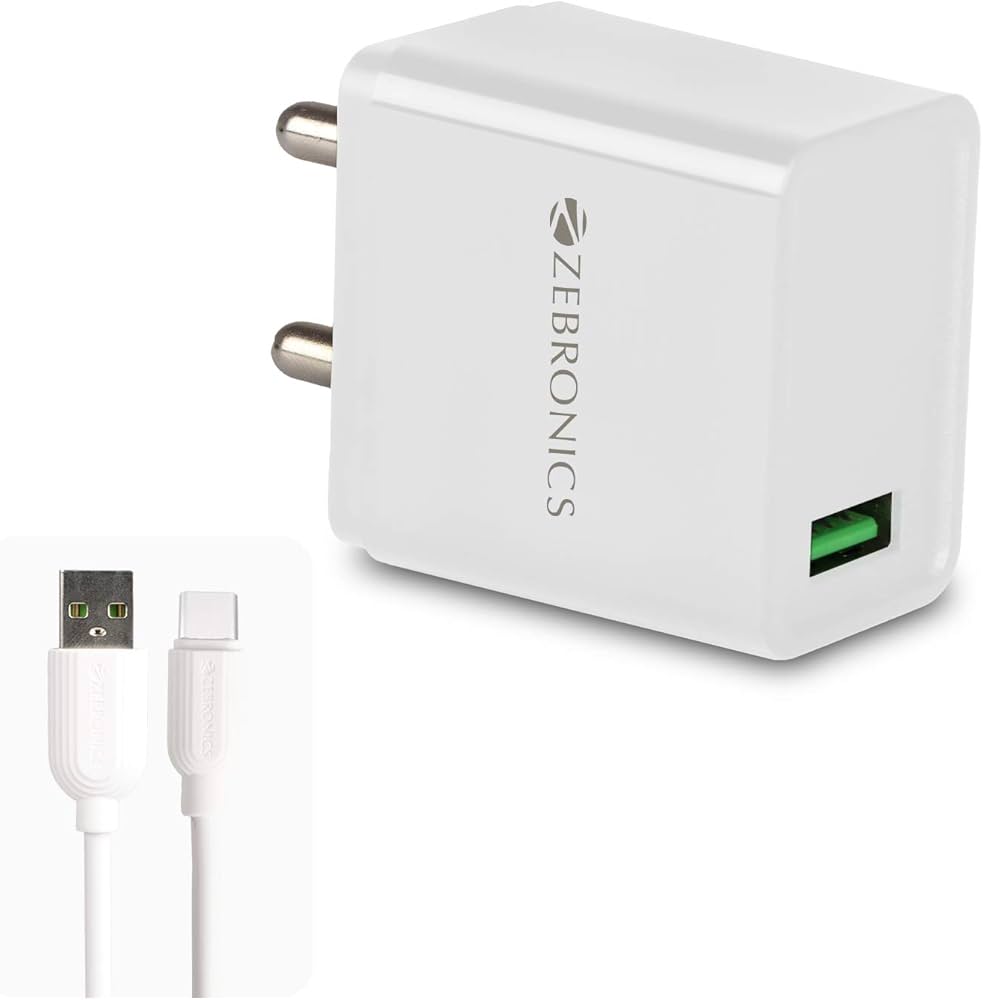 ZEBRONICS Quick Charge 5A Single Port ₹274QC 3.0 5AUSB-AErgonomic design, Overcharge protectionQuick Charge-enabled devices